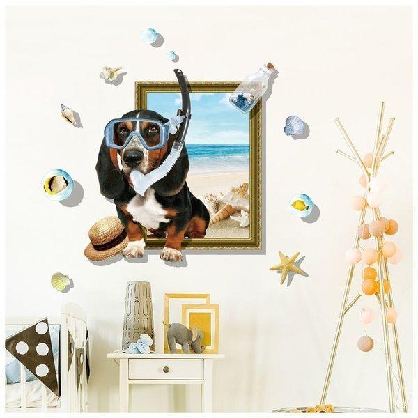 ウォールステッカー 取り外し可能 壁紙シール キッチン 海 犬 貝殻 マリン 3d 立体 模様替え パーティ イベント